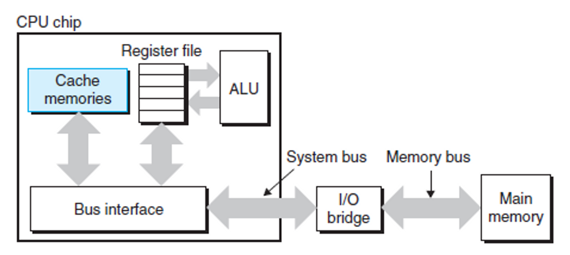 - 만약, 캐시 메모리가 존재하지 않는다면 시스템 버스와 메모리 버스를 거쳐서 메인 메모리에 직접 찾아간다.